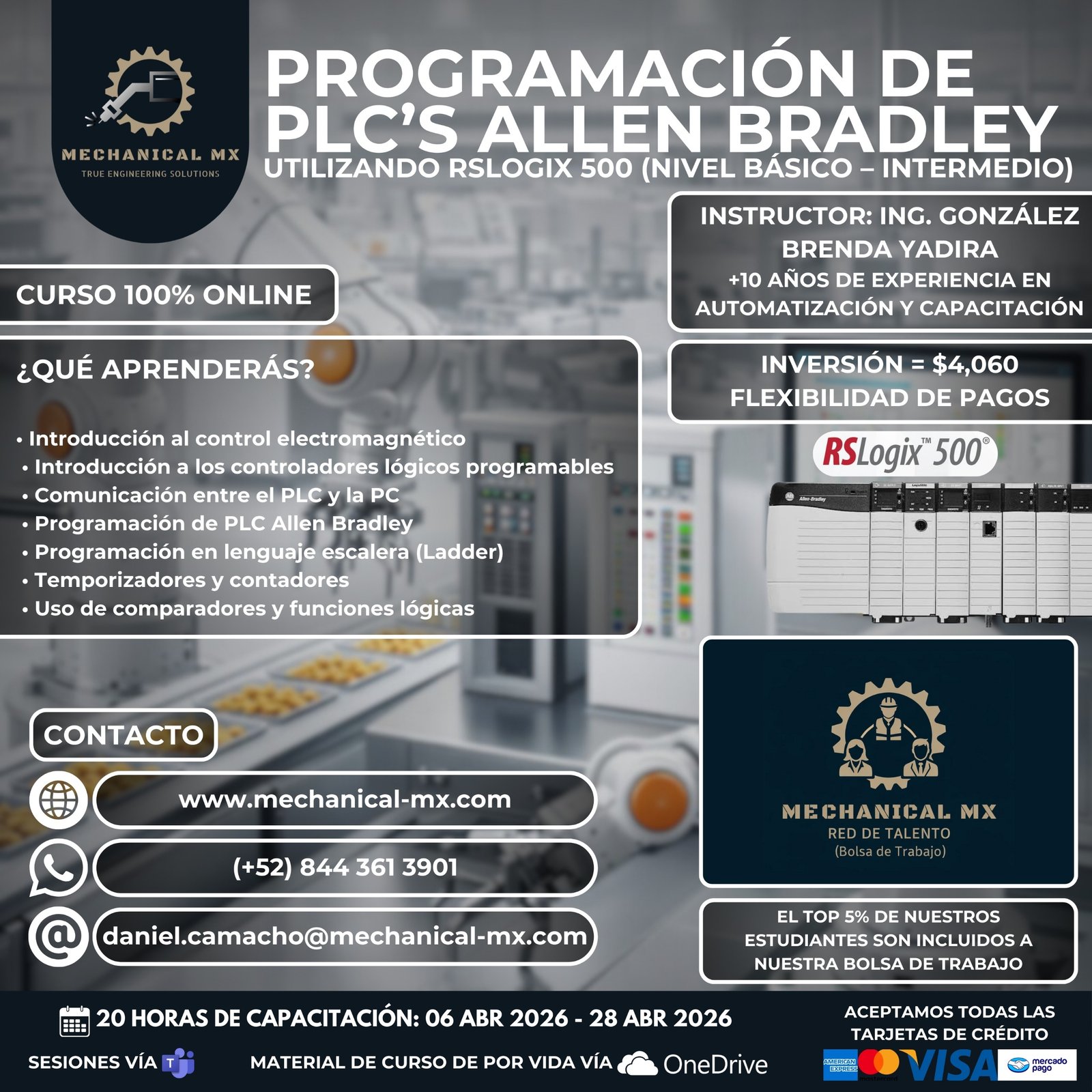 DISEÑO DE WELDING FIXTURES BIW (CURSO COMPLETO) PROGRAMACIÓN DE PLC’S ALLEN BRADLEY CON RSLOGIX 500 (BÁSICO A INTERMEDIO) SOLIDWORKS (Preparación CSWA + Software Student Edition + Código de Examen) AUTODESK INVENTOR (BÁSICO A INTERMEDIO / AVANZADO) – CON ENFOQUE TÉCNICO Próximamente nuevos cursos y capacitaciones especializadas…
